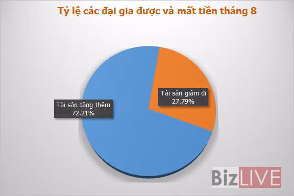 Theo thống kê gần 500 người giàu nhất Việt Nam, có tới 72% người chứng kiến giá trị tài sản của họ suy giảm đi trong tháng 8/2015.