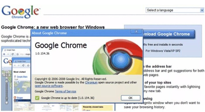 Phiên bản đầu tiên của Google Chrome trên Microsoft Windows.