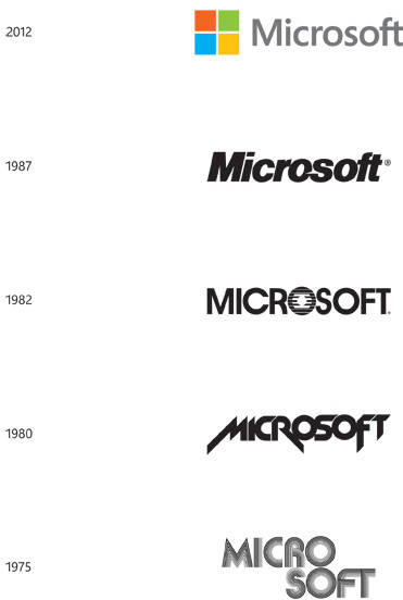 Microsoft cũng là một tập đoàn trung thành với kiểu thiết kế logo truyền thống, và hầu như không mang tới các hình ảnh tượng trưng trên biểu tượng của mình. Trong số những lần thay đổi, logo vào năm 1980 được đánh giá là khác kiểu và độc đáo nhất, nhằm phù hợp với thị yếu thời bấy giờ.