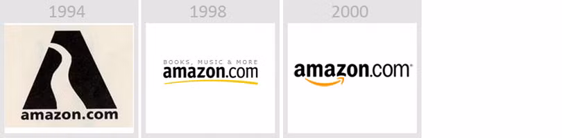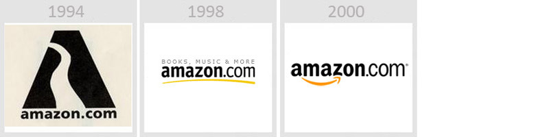 Logo thủa khai sinh của Amazon không mang đến nhiều ý nghĩa với một hình tam giác và con đường (con sông) chạy ở giữa, tạo thành một chữ A tượng hình. Mãi tới năm 1998, Amazon mới thay đổi logo cho phù hợp với ngành sản phẩm chính của họ là sách và âm nhạc. Tới năm 2000, Amazon lại một lần nữa thay đổi logo với các chữ cái dễ nhìn hơn, mang tính biểu tượng hơn với mũi tên chỉ từ A tới Z.
