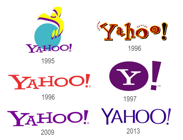 Yahoo, thương hiệu từng gắn liền với tuổi thơ của không biết bao nhiêu thế hệ 8X, 9X, cũng có một lịch sử phát triển logo khá thú vị. Đầu tiên vào năm 1995, Yahoo! mang đến một hình ảnh người nhảy cẫng lên vui sướng, tuy nhiên ngay sau đó 1 năm họ lại đổi logo về kiểu font chữ điện tử vui nhộn. Logo năm 2009 có lẽ là hình ảnh quen thuộc nhất với chúng ta khi nhắc đến thương hiệu Yahoo!