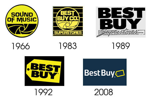 Chuỗi cửa hàng bán lẻ nổi tiếng Best Buy cũng là một trong những tên tuổi đã trải qua nhiều đợt thay đổi logo. Biểu tượng nguyên bản của Best Buy lấy tên gọi Sound of Music ra mắt năm 1966 với hình ảnh một chiếc đĩa CD bởi thời bấy giờ, Best Buy vẫn còn là một nhà cung cấp đĩa nhạc. Sau đó với sự cạnh tranh mạnh mẽ của các dịch vụ khác như iTunes, Best Buy mở rộng ra nhiều mặt hàng, và dần định hình cho thương hiệu ngày nay.
