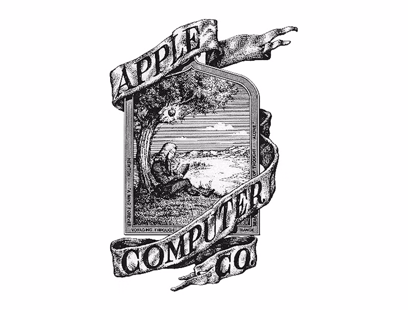 Logo đầu tiên của Apple khi mới thành lập vào năm 1976 tỏ ra khá đơn sơ, nhưng gắn liền với hình ảnh nguyên mẫu là nhà vật lý học Isaac Newton ngồi đọc sách dưới gốc cây táo. Ý nghĩa của biểu tượng này đó là Apple giống như trái táo - khi mang đến những ý tưởng, sự đột phá. Trong suốt quá trình phát triển, và ngay cả cho tới nay, Apple vẫn luôn cố gắng và phát huy được những giá trị cốt lõi của mình.