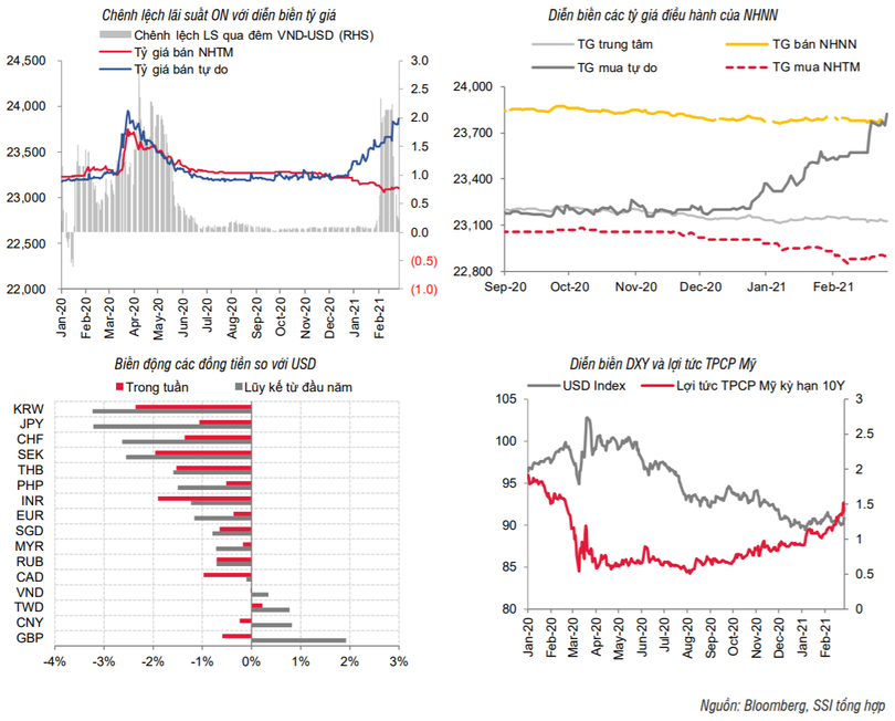 SSI cho rằng, tỷ giá USD/VND nhiều khả năng sẽ đi ngang trong ngắn hạn và có thể giảm nhẹ trong cả năm 2021.