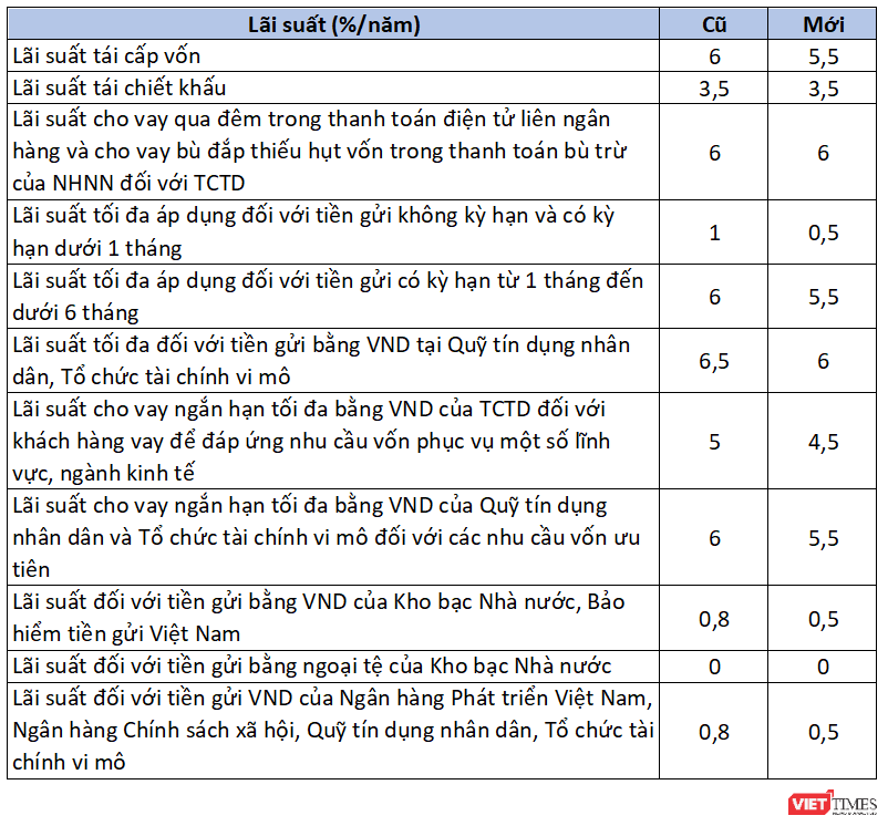 Theo đó, lãi suất tái cấp vốn giảm từ mức 6%/năm xuống 5,5%/năm.