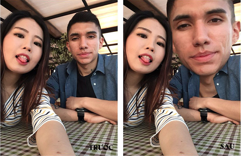 Chỉnh giúp tôi cái ảnh để mặt tôi bé hơn mặt bạn trai