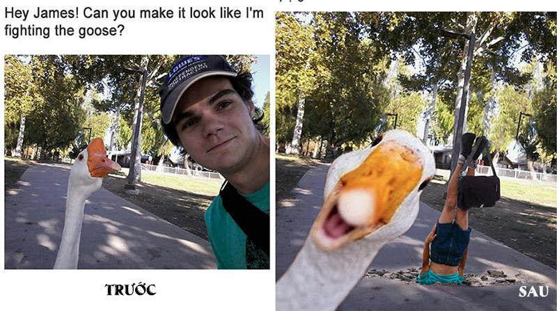 Bạn nào sửa ảnh giúp mình trông giống như đang đánh nhau với con ngỗng với
