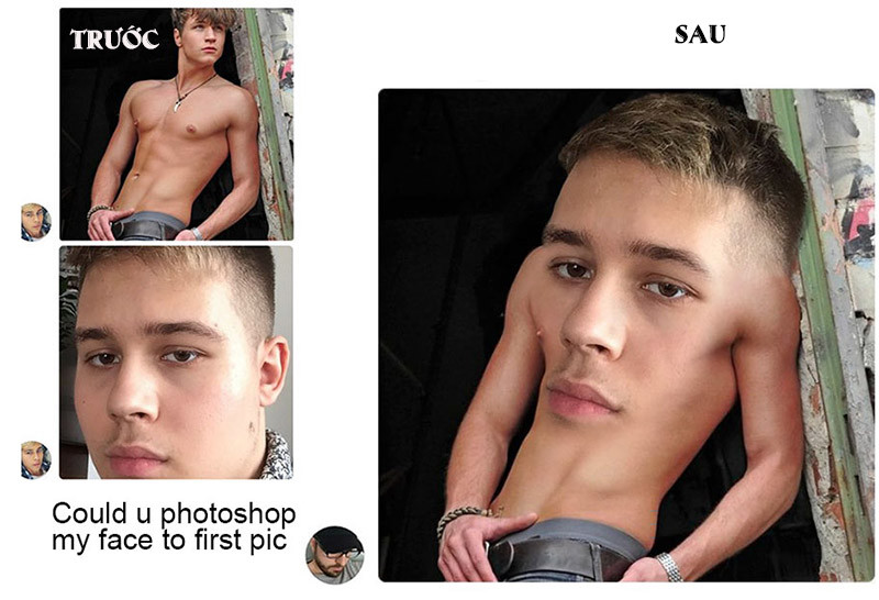 Anh có thể photoshop để gắn mặt tôi với cái ảnh thứ nhất được không