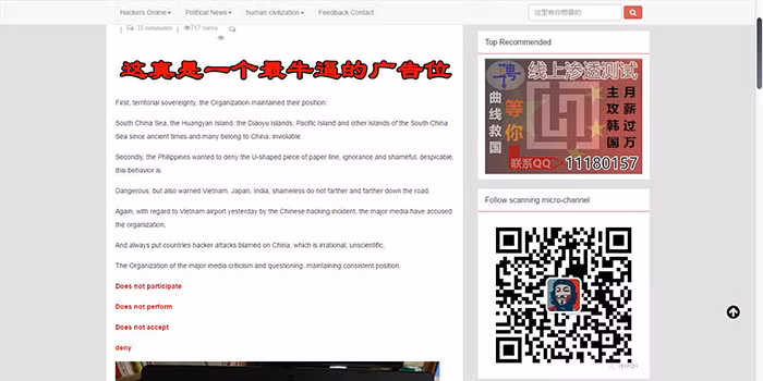 "Về sự kiện sân bay Việt Nam bị hacker Trung Quốc tấn công hôm qua, các phương tiện truyền thông liên tục chỉ trích chúng tôi và quy chụp các vụ tấn công của hacker ở các nước là do Trung Quốc, điều này là vô lý, không khoa học.