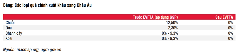 Từ ngày 1/8/2020, khi EVFTA có hiệu lực, khoảng 94% trong tổng số 547 dòng thuế nhóm hàng rau, quả tươi và chế biến được cắt giảm về 0%. Đối với rau quả, EVFTA không hạn chế về kim ngạch và hạn ngạch.