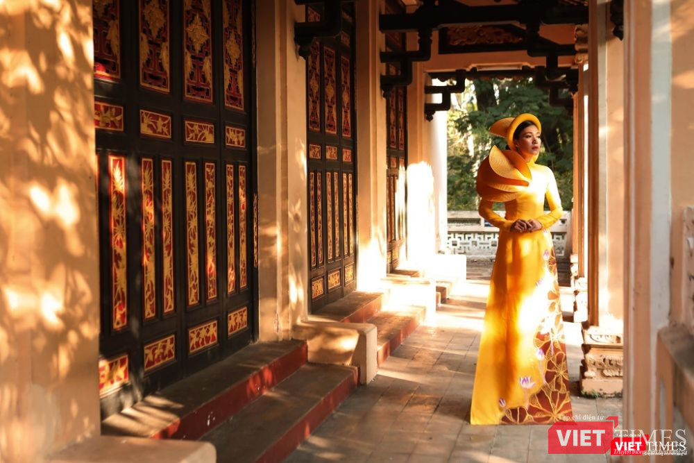 | Diễn viên điện ảnh Đinh Y Nhung trong áo dài Việt Hùng đẹp lộng lẫy sắc xuân |
