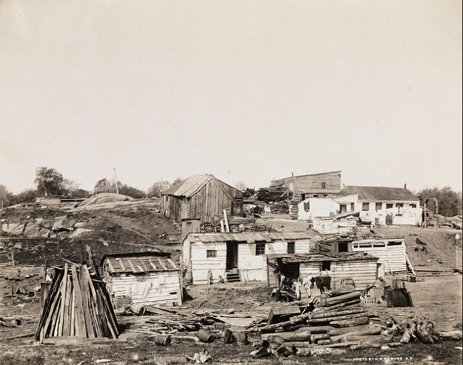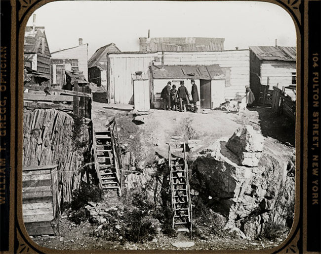 12. Năm 1864, The New York Times ước tính rằng có 20.000 người chiếm đất, người phải đối mặt với một chu kỳ liên tục của việc trục xuất và tái định cư, sống ở Manhattan. Khi thành phố phát triển về phía bắc, người nhập cư Đức và Ireland không thể tìm thấy nhà ở giá rẻ được xây dựng bằng gỗ.