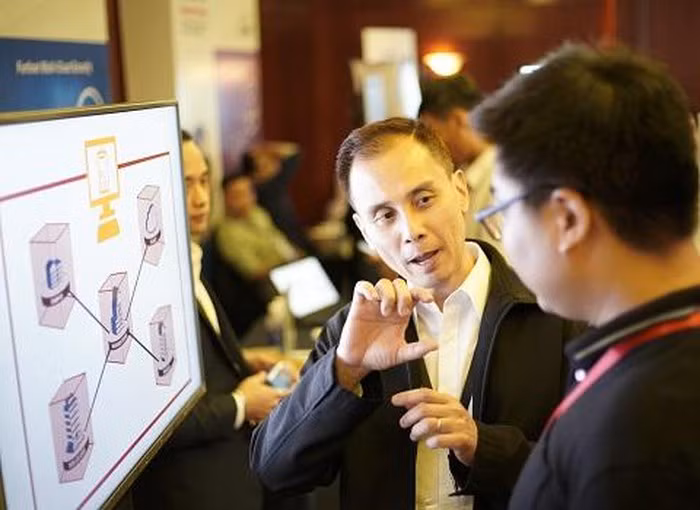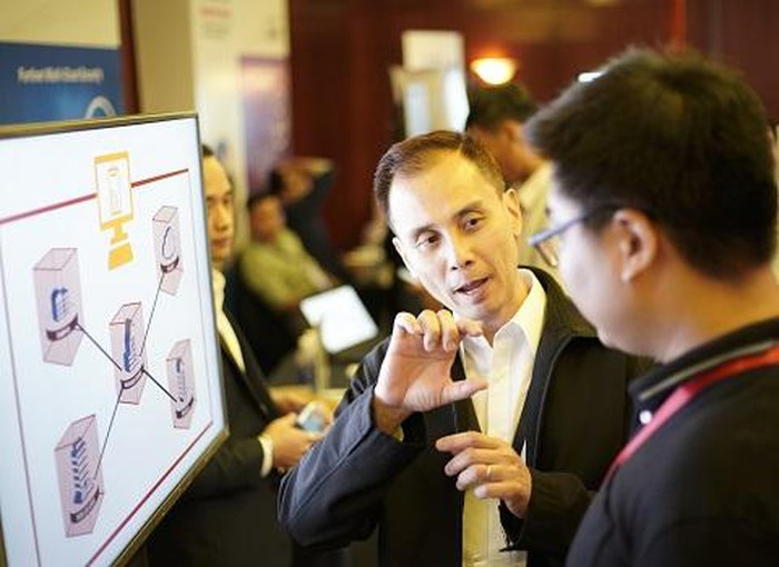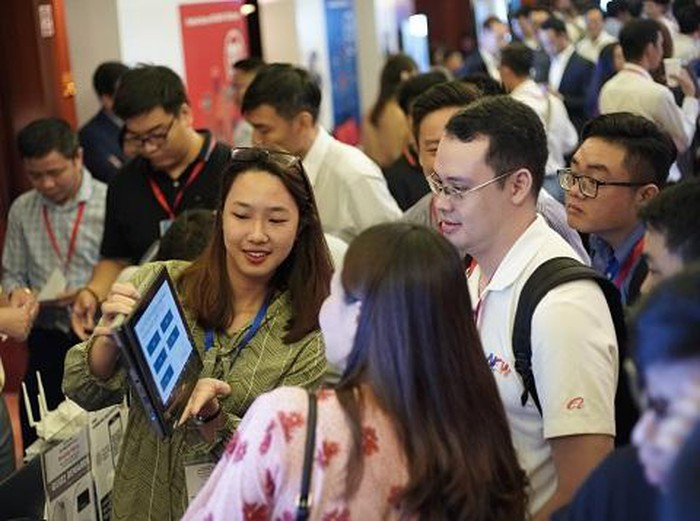 Khách tham dự sự kiện cùng trao đổi các nội dung về hội thảo, các giải pháp được giới thiệu