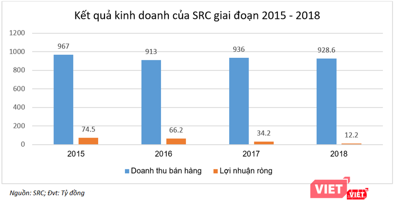 Đơn giản nhất, một nhà đầu tư chỉ ra, với mức thu nhập trên một cổ phần (EPS) năm 2018 là 433 đồng, cổ phiếu SRC đang được định giá ở mức P/E lên đến 107 lần.