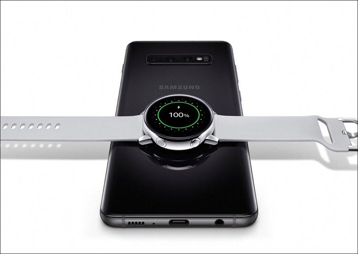 Galaxy S10+ sạc cho Galaxy Watch Active.