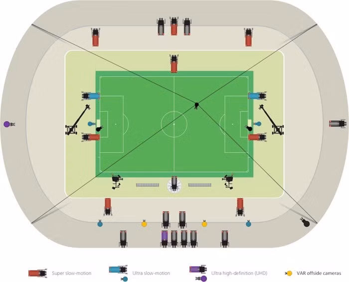Vị trí các camera được sử dụng tại mỗi trận đấu.