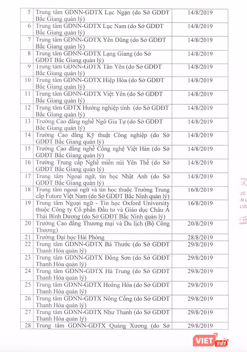 Dưới đây là danh sách những đơn vị phải dừng việc tổ chức kiểm tra, sát hạch, cấp chứng chỉ ngoại ngữ và chứng chỉ ứng dụng công nghệ thông tin.