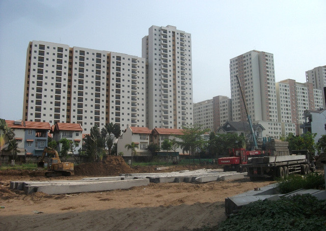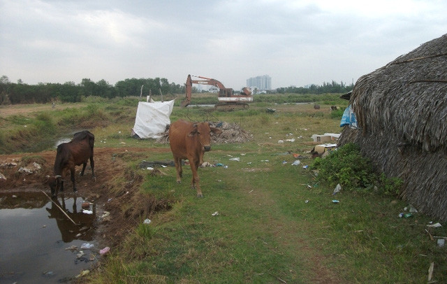 Hình ảnh thường thấy hàng ngày bên trong dự án khu dân cư Phước Kiển (huyện Nhà bè). QCG kỳ vọng dự án này sẽ tạp ra "kỳ tích" về doanh thu từ quý 2/2016. Tuy nhiên, sau 7 năm dự án vẫn còn rất hoang vu.
