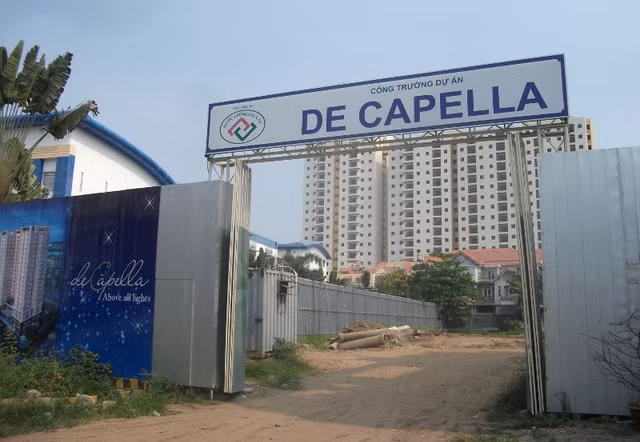 Cận ảnh dự án De Capella tọa lạc tại mặt tiền đường Lương Định Của, Thủ Thiêm mà Quốc Cường Land hy vọng sẽ lấy lại hình ảnh một thời huy hoàng của công ty mẹ QCG.