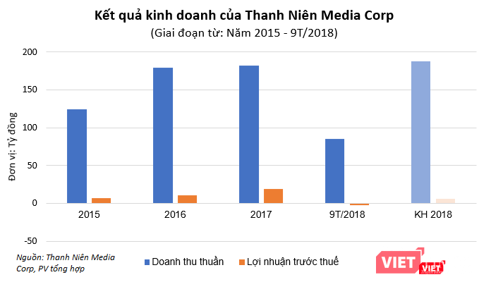Tuy nhiên, theo kết quả kinh doanh được công bố gần nhất, Thanh Niên Media Corp mới chỉ hoàn thành 45,24% kế hoạch, ghi nhận khoản lỗ trước thuế lũy kế 2,4 tỷ đồng sau 9 tháng đầu năm 2018.