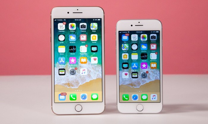 Tiếp theo là bộ đôi iPhone 8 và 8 Plus cũng được Apple ra mắt cùng với iPhone X. Cả hai vẫn mang phong cách giống với iPhone 6 và 6 Plus ra mắt vào năm 2014, chỉ có mặt lưng sử dụng chất liệu kính cường lực thay cho bằng kim loại trước đây.
