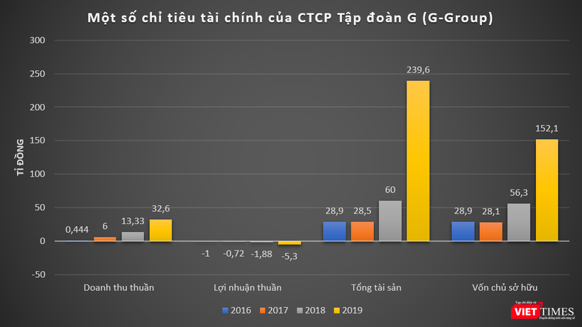 Dữ liệu của VietTimes cho thấy, từ khi thành lập đến nay, G-Group chưa từng báo lãi. Như năm 2016 và 2017, công ty này ghi nhận doanh thu thuần lần lượt đạt 444 triệu đồng và 6 tỉ đồng, báo lỗ thuần ở mức 1 tỉ đồng và 720 triệu đồng.