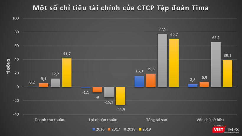 Năm 2019, doanh thu thuần của Tima đạt 41,7 tỉ đồng, tăng gấp 3,4 lần so với năm 2018; lỗ thuần ở mức 25,9 tỉ đồng, trong khi năm 2018 lỗ 15,1 tỉ đồng.