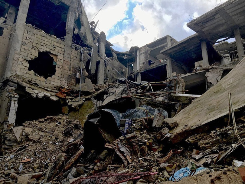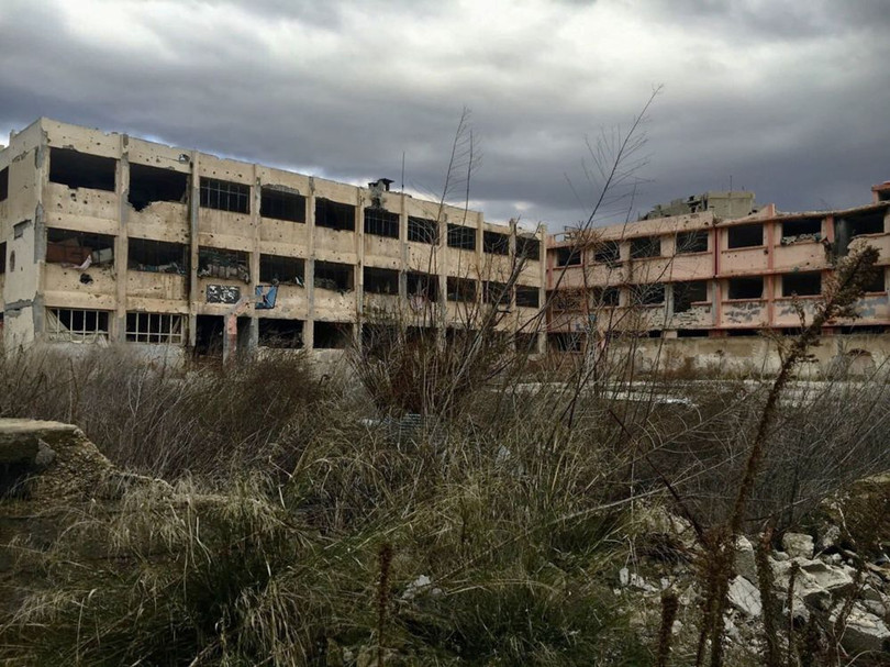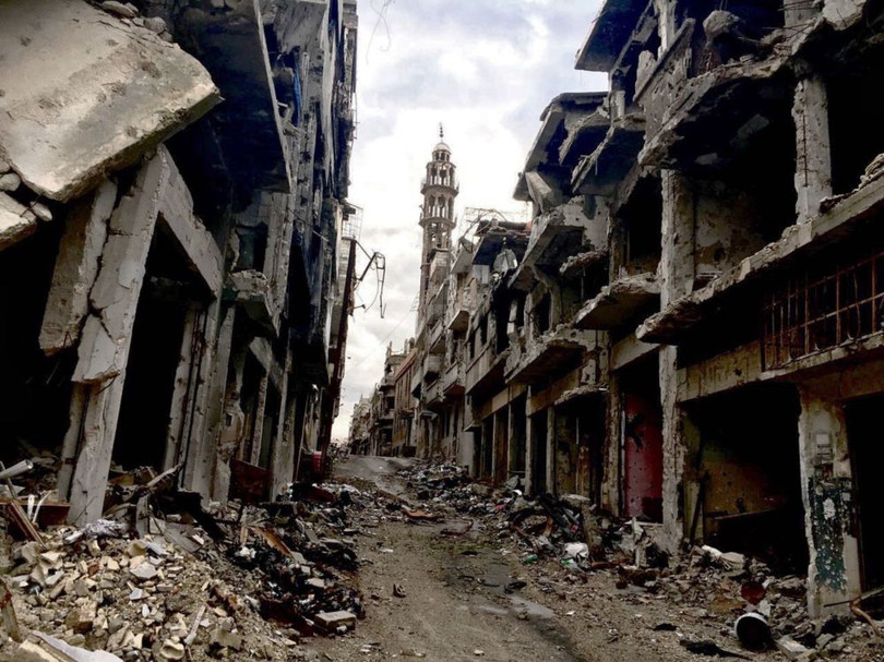 | Tòa nhà đổ nát là điều thường thấy ở thành phố Homs của Syria. |