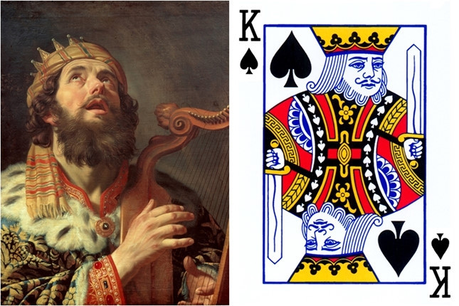 Quân bài K bích là hình ảnh của vua David (1040TCN-970), ông là vị vua nổi tiếng của vương quốc Israel thống nhất. Ông là một người yêu nhạc, giỏi diễn tấu đàn hạc và viết nhiều bài thánh ca trong kinh thánh, chính vì vậy trong các hình vẽ về ông thì hầu hết đều có hình ảnh cây đàn.