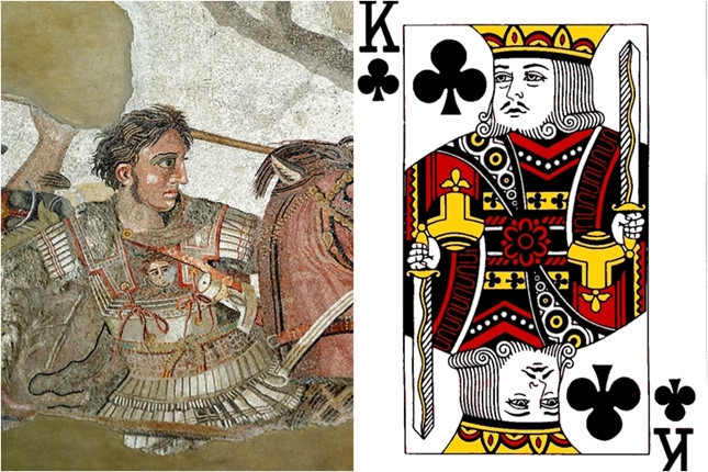 Hình ảnh trong quân bài K tép chính là Alexander Đại đế (356-323TCN). Ông là quốc vương thứ 14 của nhà Argead ở Vương quốc Macedonia, là con của vua Philip II, nhưng ít dành thời gian cho việc trị quốc tại quê nhà Macedonia. Vào năm 20 tuổi, ông kế thừa ngôi vị và có mưu toan thống trị thế giới.