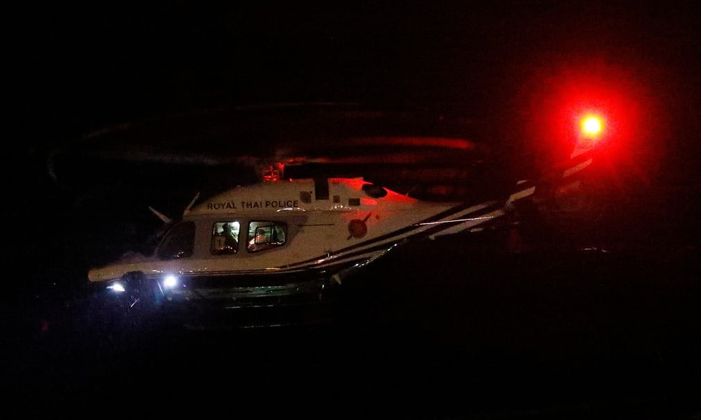| Trực thăng của Cảnh sát Hoàng gia Thái đưa một cậu bé tới bệnh viện (ảnh: Reuters) |