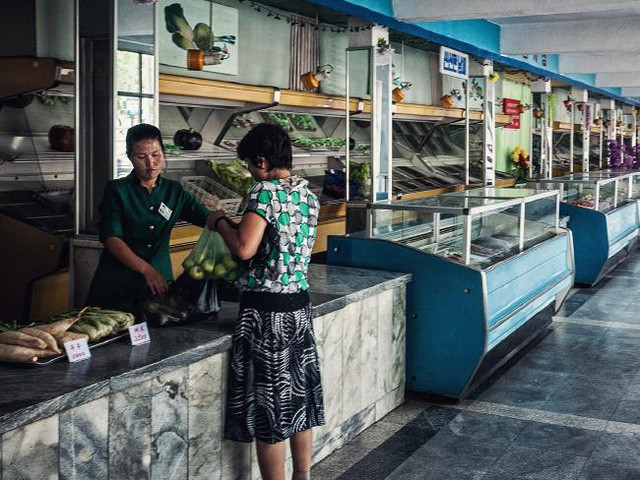 Một cửa hàng thực phẩm tại Triều Tiên. Huniewicz cho biết cửa hàng này chỉ dành cho người địa phương và anh đã bị hướng dẫn viên lôi ra khỏi cửa hàng ngay sau khi chụp bức ảnh này, nhưng hướng dẫn viên không biết anh đã chụp ảnh.