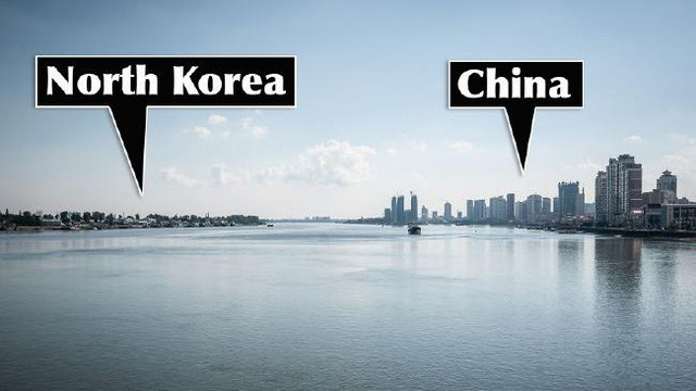 Bức ảnh cho thấy sự đối lập về phát triển giữa Triều Tiên và Trung Quốc hai bên bờ sông phân chia hai nước.