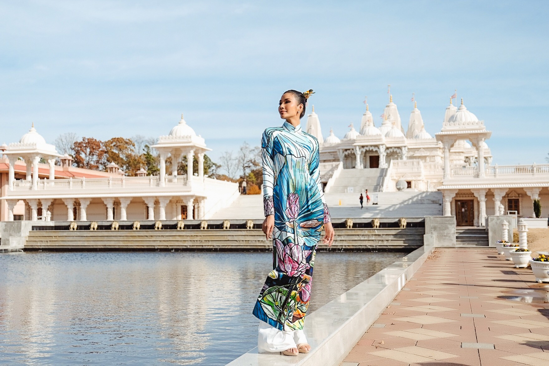 Người đẹp Hoàng Thùy tranh thủ giao lưu với các đại diện sắc đẹp đến từ mọi quốc gia trên thế giới, đồng thời dạo bước tham quan một vài cảnh đẹp tại Atlanta trước khi bắt đầu các vòng thi phụ.