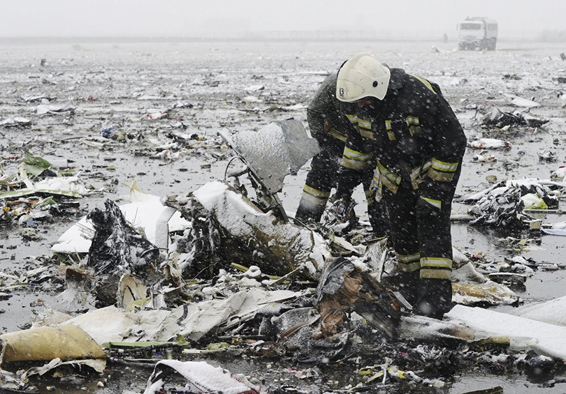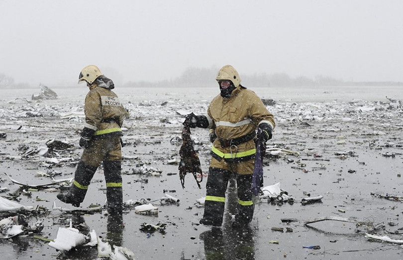 Nhân viên “Cấp cứu” tại sân bay Rostov, nơi chiếc máy bay chở khách Boeing-737-800 bị rơi trong khi hạ cánh.
