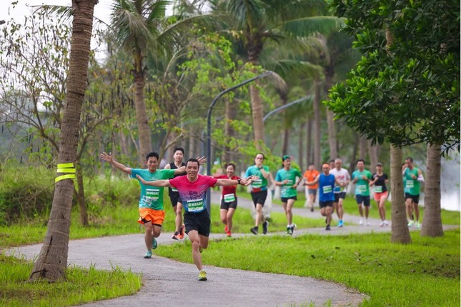 Diễn ra từ 5h, giải Ecopark Marathon một lần nữa ghi dấu ấn trong lòng những người yêu chạy về một cung đường thiên nhiên ấn tượng. Dọc bên hai đường đua là hàng trăm nghìn cây xanh, toả bóng mát. Không khí trong lành và một nền nhiệt dễ chịu như nâng bước chân của 4.000 VĐV.