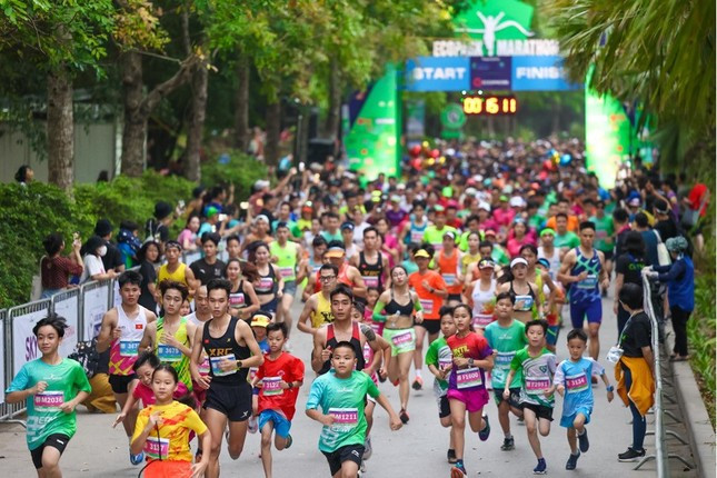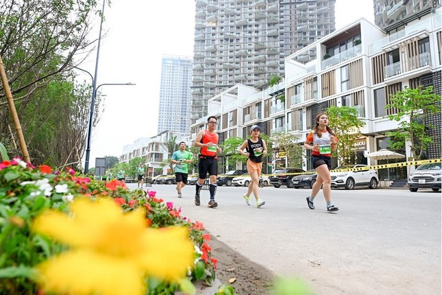 Những con đường rợp cỏ hoa, bố mẹ nắm tay con cái cùng chạy bộ, hay cơn mưa rào đầu hạ trút xuống bất ngờ tạo nên điểm nhấn khó quên ở giải Ecopark Marathon 2023.