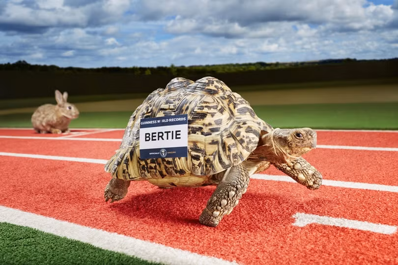 Ngày 9-7-2014, chú rùa Bertie đến từ Anh trở thành chú rùa có tốc độ bò nhanh nhất thế giới với vận tốc 0,28 mét/giây. Tốc độ của Bertie nhanh gấp đôi rùa bình thường, trong vòng 6 phút, nó có thể bò được 100 mét. Sau đó chủ nhân con rùa này là Marco và Janine đã phát hiện ra tài năng đặc biệt này của nó. Marco cho biết: "Hiện nay rùa Bertie và bạn gái chú đang sống rất hạnh phúc trong ngôi nhà của mình, giấy chứng nhận Kỷ lục Guiness đang được treo trên tường. Để giành được giấy chứng nhận này, Bertie đã phải cố gắng rất nhiều!" Chú rùa này còn có một sở thích đáng yêu là trước cuộc thi nào cũng ăn món dâu tây mà chú thích nhất.