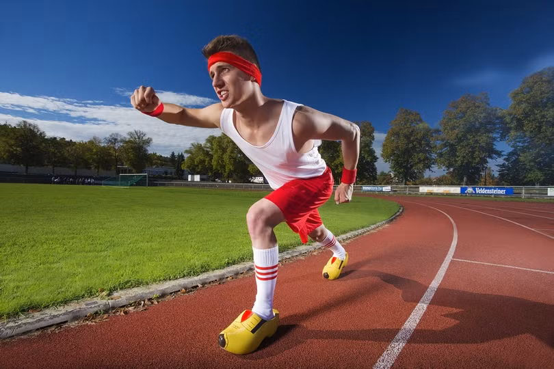 Anh Andre Ortolf người Đức có thể đi guốc gỗ chạy hết 100 mét trong vòng 16,27 giây.