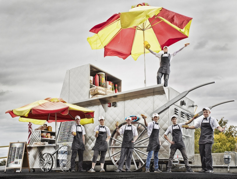 Chiếc xe dạo bán hot dog lớn nhất thế giới này rộng 2,81 mét, dài 706 mét, chiều cao từ mặt đất tới hai càng điều khiển xe là 3,72 mét, đường kính bánh xe 1,86 mét. Chủ nhân của chiếc xe này là thợ đầu bếp 44 tuổi Marcus đến từ Mỹ. Sở dĩ Marcus phát minh ra chiếc xe này vì anh cảm thấy rất bất tiện khi dùng chiếc xe cũ trong điều kiện thời tiết xấu. Con trai Marcus là người rất thích đọc cuốn Kỷ lục Guiness, cậu đã kiến nghị cha mình chế tạo một chiếc xe dạo bán hot dog khổng lồ để lập kỷ lục này. Marcus nói: "Thật không đơn giản để chế tạo chiếc xe này! Nó đòi hỏi rất nhiều thời gian, rất nhiều công việc vụn vặt phát sinh, nhưng đồng thời nó cũng đem lại cho tôi rất nhiều niềm vui!" Mỗi ngày Marcus cung cấp hot dog cho hơn 300 người, nhưng hương vị và chất lượng của sản phẩm không hề thay đổi! Không chỉ có vậy, Marcus còn có thể làm ra 33 loại hot dog với hương vị khác nhau, anh cảm thấy vô cùng tự hào vì điều đó!