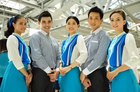 Bangkok Airways: Đây có thể là một trong những mẫu đồng phục hàng không màu sắc nhất. Những sắc xanh đậm nhạt khác nhau xuất hiện trên đồng phục của nam - nữ tiếp viên hàng không Bangkok Airways là biểu trưng cho sắc xanh của bầu trời và mặt biển. Thực sự, thiết kế của Bangkok Airways đem lại một cảm giác tươi mới và dễ chịu - một cảm giác rất cần thiết cho các hành khách khi bay.