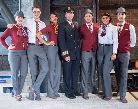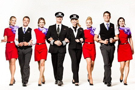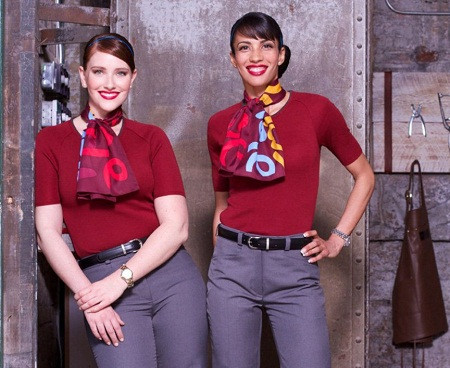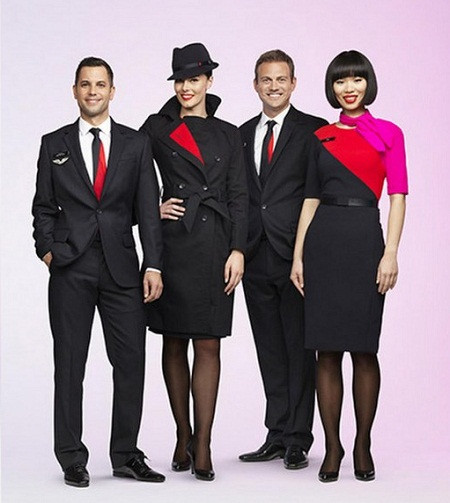 Virgin America, Virgin Atlantic và Virgin Australia: Cả ba hãng bay này đều thuộc tập đoàn Virgin và đều được biết tới với những mẫu thiết kế đồng phục gây ấn tượng mạnh. Virgin America có thiết kế cổ điển với váy ngắn màu đen.