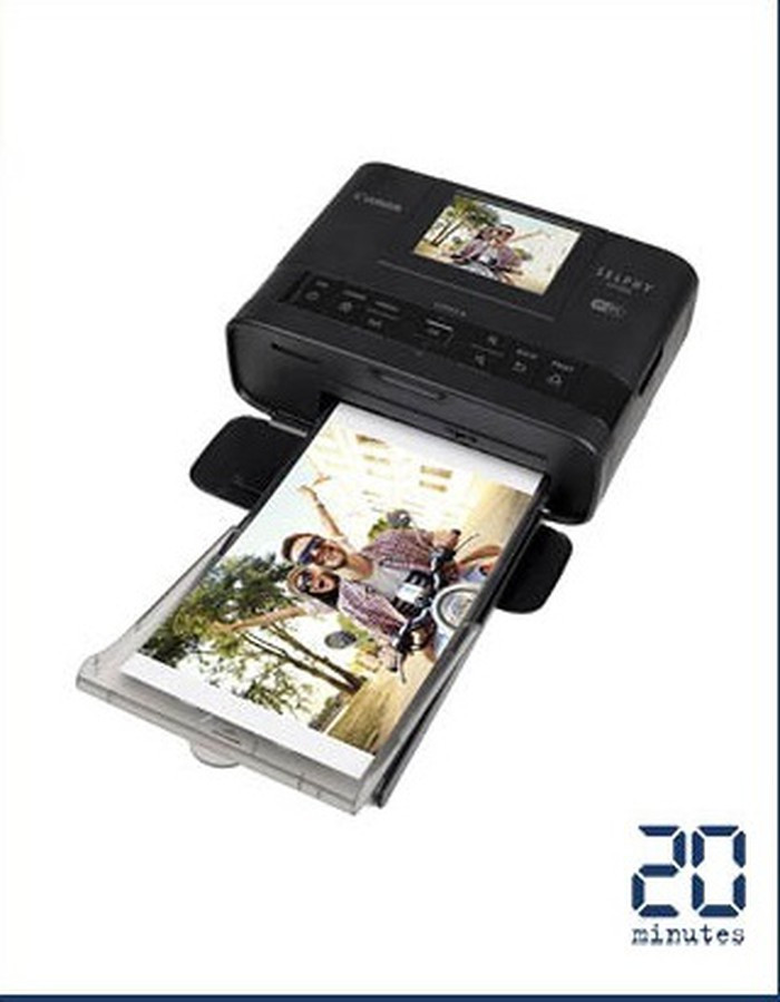 2. Canon Selphy CP1300. Được trang bị công nghệ in nhiệt, Selphy CP1300 của Canon cung cấp những bức ảnh chất lượng có thể lưu giữ trong khoảng 100 năm. Ngoài các tính năng cảm ứng, máy in còn có chế độ Party Shuffle cho phép nhiều người sử dụng máy in cùng một lúc và ghép hình từ một số điện thoại thông minh khác nhau.