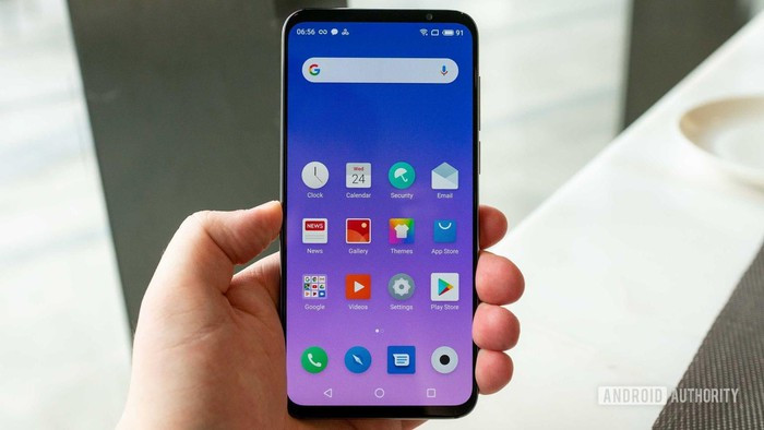 Meizu 16s (từ 476 USD) - Model này có thiết kế tối giản, phần màn hình được tối ưu đạt 91.53% diện tích hiển thị mặt trước. Cụm camera của máy hỗ trợ tính năng Dual Super Night Scene, cho phép chụp liên tục 17 ảnh và ghép lại với nhau để cải thiện chất lượng hình trong điều kiện ánh sáng yếu. Điểm hạn chế trên thiết bị này là máy đã bị loại bỏ giắc cắm tai nghe. Ảnh: Android Authority.