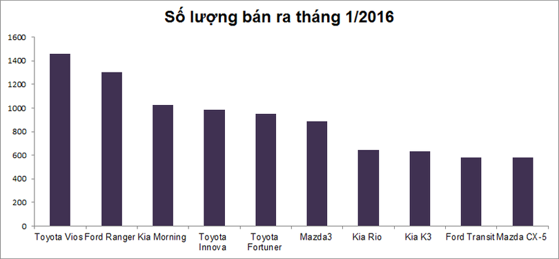 Nhóm 10 xe ô tô bán chạy nhất tháng 1/2016.