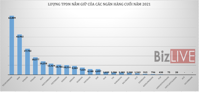 VPBank, TPBank, BIDV, Vietcombank, VietinBank và HDBank cũng là những ngân hàng đang nắm lượng lớn trái phiếu doanh nghiệp, với giá trị trên 10.000 tỷ đồng mỗi ngân hàng.