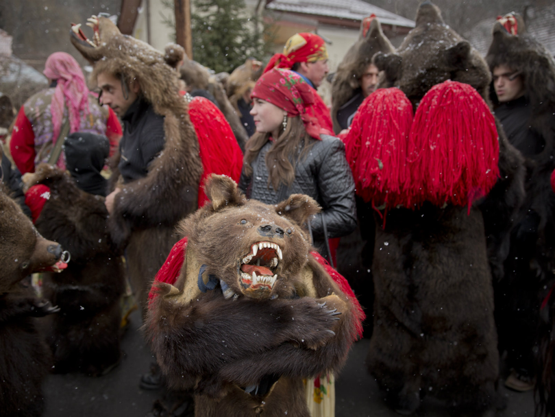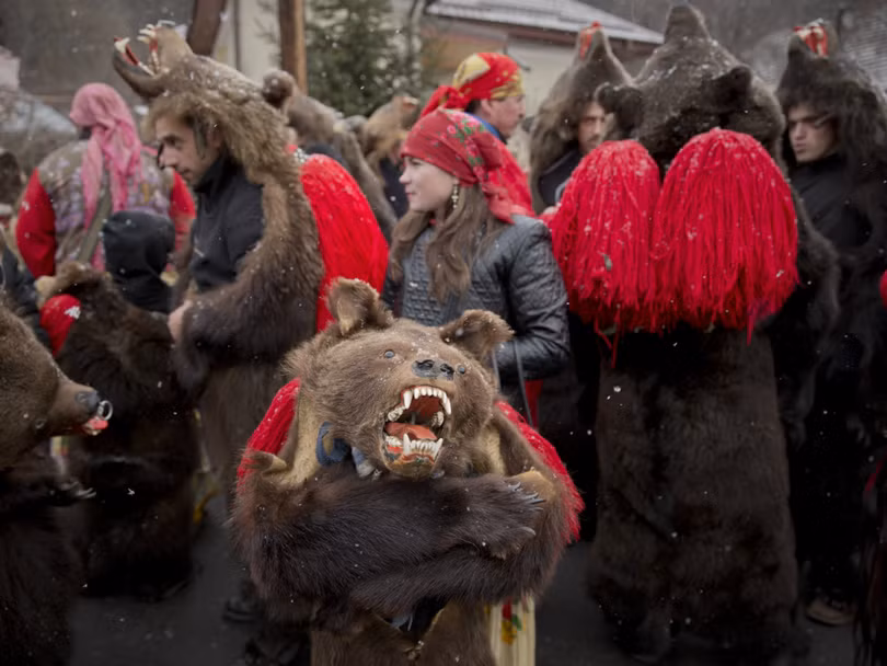 Ở Rumani, người dân khoác lên mình bộ lông gấu cùng với điệu nhảy gấu vào đêm giao thừa để cái ác lùi xa họ, xua đuổi những rủi ro, vận hạn trong năm cũ và cầu mong một năm mới an lành