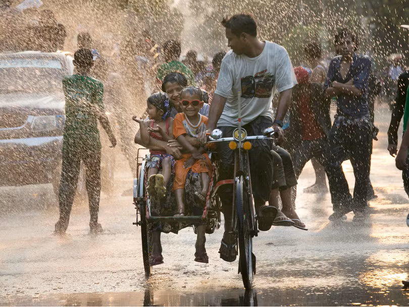 Lễ hội nước Thingyan diễn ra vào giữa tháng 4 với sự xuất hiện của vị vua già Thagyamin. Vào dịp này, người trẻ tuổi sẽ đổ nước lên tóc của người lớn tuổi để thể hiện sự kính trọng và biết ơn. Vẩy nước tượng trưng cho sự may mắn, thuần khiết và sẽ xóa tất cả mọi bệnh tật, lỗi lầm hay vận hạn.