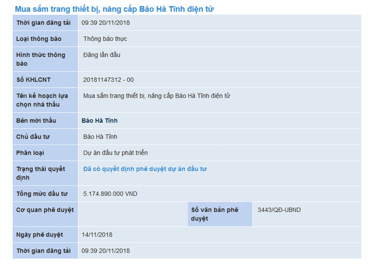 | Dự án Mua sắm trang thiết bị, nâng cấp Báo Hà Tĩnh điện tử |