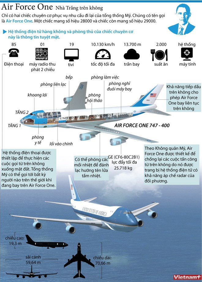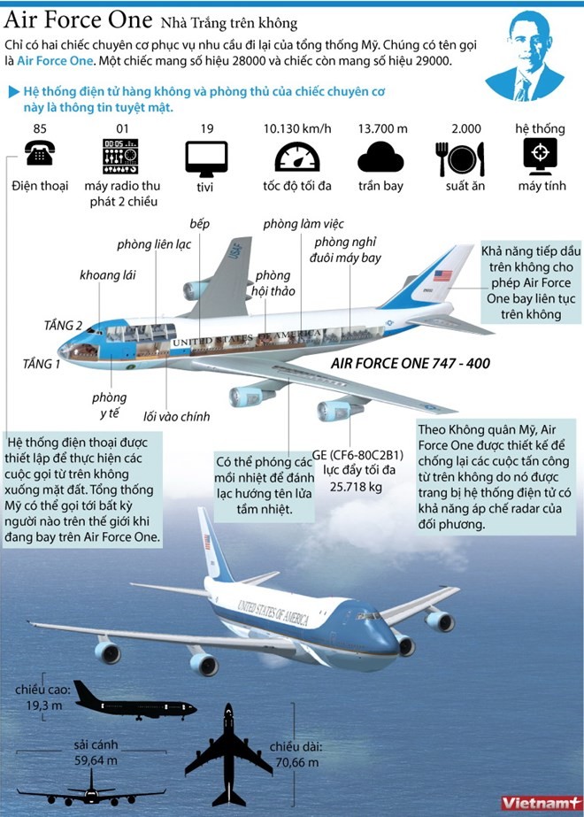 Những thông tin cơ bản về chiếc Air Force One, được thể hiện trên đồ họa: